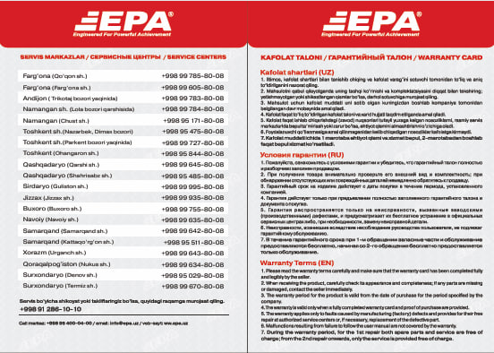 EPA mahsulotlari kafolat bilan ta’minlanadi.